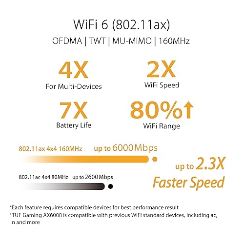 ASUS TUF Gaming WiFi 6 Router (TUF-AX6000) -Dedicated Gaming Port, Dual 2.5G Port, 3 Steps Port Forwarding, Extendable Router with AiMesh, AiProtection Pro Network Security, Aura RGB Lighting