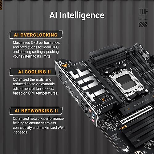 ASUS TUF Gaming X870-PLUS WiFi AMD AM5 X870 ATX Motherboard, 16+2+1, 80A SPS Power Stages, DDR5, PCIe 5.0 Ready, Four M.2 Slots, Wi-Fi 7, 2.5Gb LAN, HDMI, USB4® 40Gbps, SATA 6 Gbps, USB 20Gbps Type-C TUF X870-PLUS|WIFI 7