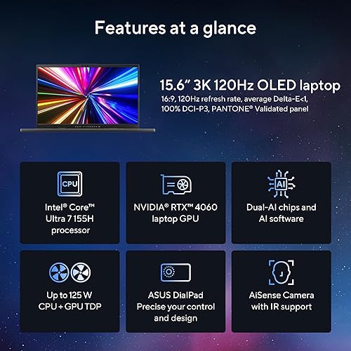 ASUS Vivobook Pro 15 OLED (2024), AI Ready, 15.6” 3K 120Hz OLED Laptop, Intel Core Ultra 7 155H, NVIDIA GeForce RTX™ 4060, 16GB Memory, 1TB SSD, Windows 11 Home, N6506MV-DS71-CA