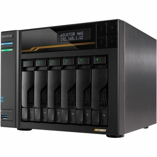 Asustor Lockerstor 6 Gen3 AS6806T 6 Bay NAS, AMD Ryzen Quad-Core 2.3 GHz, 16GB RAM ECC DDR5, 4 M.2 NVMe Slots, Dual 5GbE and Dual 10GbE Port, USB 4.0 Type-C, Network Attached Storage (Diskless)