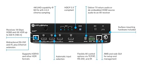Atlona AT-OME-ST31A 3x1 4K/UHD Extender and Switcher with HDMI/USB-C and POE (Audio De-Embedding)