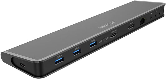 Accell Thunderbolt 3 Dock - Dual Display 4K at 60Hz, 70W Charging, 40Gbps, TB3 Cable, 6x USB Ports, Ethernet, 135W Power Adapter, Audio Ports, Aluminum Docking Station, Power Delivery(K160B-001K)