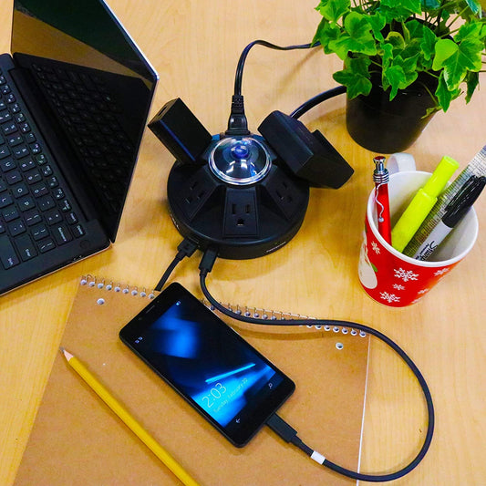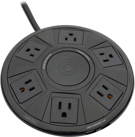 Accell Power Air - Surge Protector and USB Charging Station - Black, 6 ft (1.8 m) (D080B-048B) Black Power Air