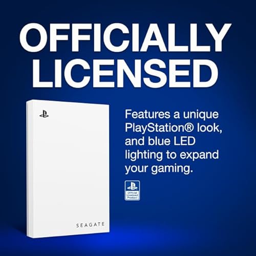 Seagate Game Drive for PS5 External SSD 1TB Solid State Drive - USB 3.2 Officially Licensed White with Blue LED Lighting (STMH1000100)