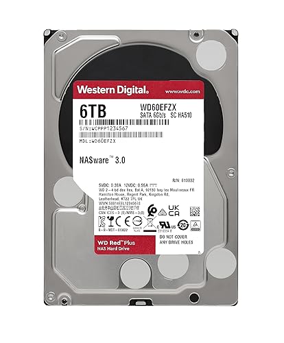 Western Digital 6TB WD Red Plus NAS Internal Hard Drive HDD - 5640 RPM, SATA 6 Gb/s, CMR, 128 MB Cache, 3.5" -WD60EFZX