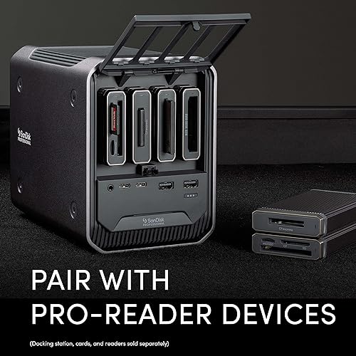 SanDisk Professional - PRO-Dock 4; 4-Bay Reader Docking Station - (1x) USB-C (USB 3.2 Gen 1) Port - SDPD14F-0000-NBAAD, Gray