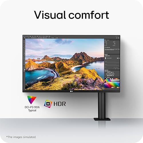 LG Ultrafine Ergo 32UN880K 31.5” 4K UHD Monitor, IPS Display, HDR 10, DCI-P3 95% Color, USB-C, Adjustable Ergonomic Stand, Height/Tilt/Swivel/Pivot, VESA Compatible, Eye Care Technology 31.5 External Speakers USB Type-C HDR10