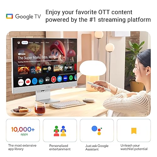 ASUS ZenScreen 27” 4K USB-C Smart Monitor (MS27UC) - UHD (3840 x 2160) IPS, 99% sRGB, Google TV, Harman Kardon Speakers, USB-C 90W PD, USB Hub, Wireless Display, Netflix and YouTube