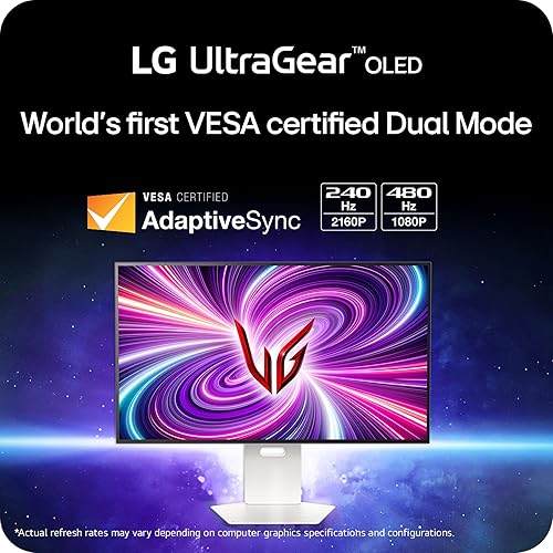 LG Ultragear™ OLED 32GS95UV-W - 32 inch Dual-Mode Gaming Monitor | Dual-Mode (4K 240Hz FHD 480Hz) / UHD (3840 x 2160) / 0.03ms (GtG) / DCI-P3 98.5% 32" White Unity Hexagon Lighting