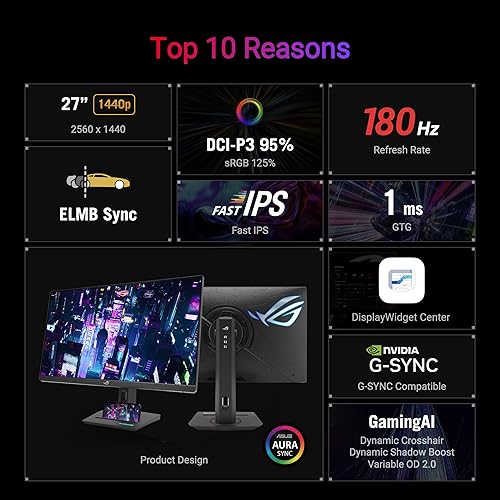 ASUS ROG Strix 27” 1440P USB-C HDR Gaming Monitor (XG27ACG) -QHD, 180Hz, 1ms, Fast IPS, DCI-P3 95%, Extreme Low Motion Blur Sync, G-Sync Compatible, Tripod Socket, Aura Sync, AI Gaming