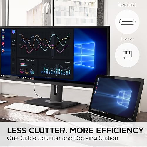 ViewSonic VG3456A 34 Inch 21:9 UltraWide QHD 1440p IPS Monitor with Ergonomic Design, 100W USB C, Docking Built-in, Gigabit Ethernet for Home and Office