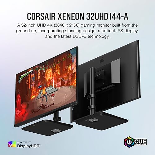 Corsair XENEON 32UHD144-A Gaming Monitor - 32-Inch, IPS UHD (3840 x 2160), AMD FreeSync Premium Adaptive Sync, 144Hz Refresh Rate, 1ms, DisplayHDR600, HDMI 2.1, DisplayPort 1.4, USB-C 3.1 - Black