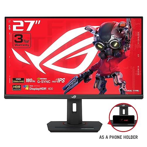 ASUS ROG Strix 27” QHD HDR400 USB-C Gaming Monitor(XG27ACS)-2560x1440, 180Hz, 1ms, Fast IPS, 133% sRGB, Extreme Low Motion Blur Sync, G-Sync Compatible, DisplayWidget, Tripod Socket, 3 Year Warranty 27" Fast IPS QHD 180Hz G-SYNC USB-C