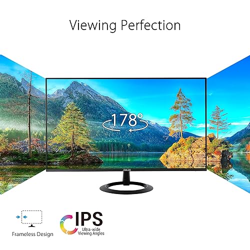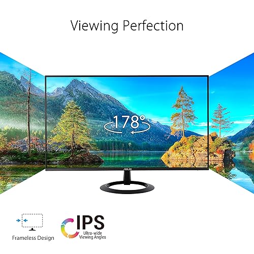 ASUS 27” (27-inch viewable) Eye Care Monitor (VZ27EHF) - Full HD (1920 x 1080), IPS, 100Hz, 1ms, Frameless, Adaptive-Sync, HDMI, Low Blue Light, Flicker Free, Ultra-Slim Profile, 3 Year Warranty