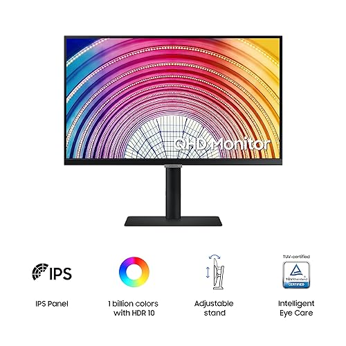 SAMSUNG S60UA Series 24-Inch Viewfinity WQHDComputer Monitor, 75Hz, IPS Panel, USB-C, HDR10 (1 Billion Colors), Height Adjustable Stand, TUV-Certified Intelligent Eye Care (LS24A600UCNXGO) 24-inch 2022 version Display + HDMI + USB-C Ports