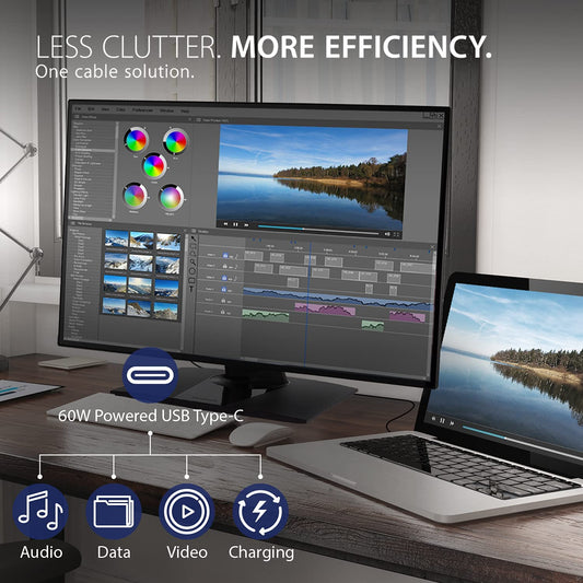ASUS 23.8” 1080P Docking Monitor (VA24ECPSN) - Full HD, IPS, 75Hz, Adaptive-Sync, Speakers, Eye Care, Low Blue Light, Flicker Free, USB-C, RJ45, HDMI, Frameless, Height Adjustment, VESA Wall Mountable