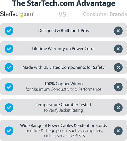 StarTech.com 8ft (2.4m) Heavy Duty Power Cord, NEMA 5-15P to C15 AC Power Cord, 15A 125V, 14AWG, Replacement Computer Power Cord, Monitor Power Cable, PC Power Supply Cable, UL Listed (PXT515C158) 8 ft / 2.5m 14 AWG