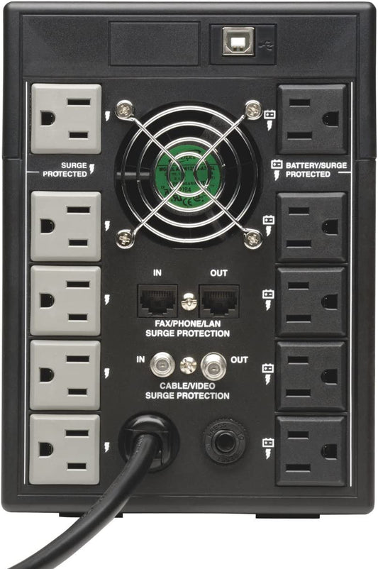 Tripp Lite OMNI1500LCDT 1500VA UPS Battery Back Up AVR LCD Display 10 Outlets 120V 810W Tel & Coax Protection USB, 3 Year Warranty & $250,000 Insurance, Black OMNI 1500VA Tower UPS