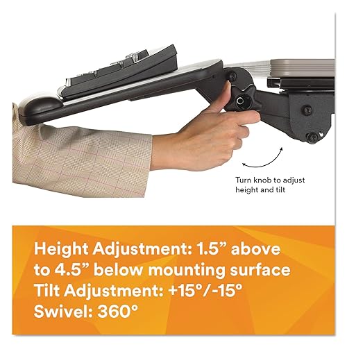 3M Keyboard Tray with Adjustable Keyboard and Mouse Platforms, Turn Knob to Adjust Height and Tilt, Swivels and Stores Under Desk, Gel Wrist Rest and Precise Mouse Pad, 17.75" Track, Black (AKT80LE) Knob Adjust