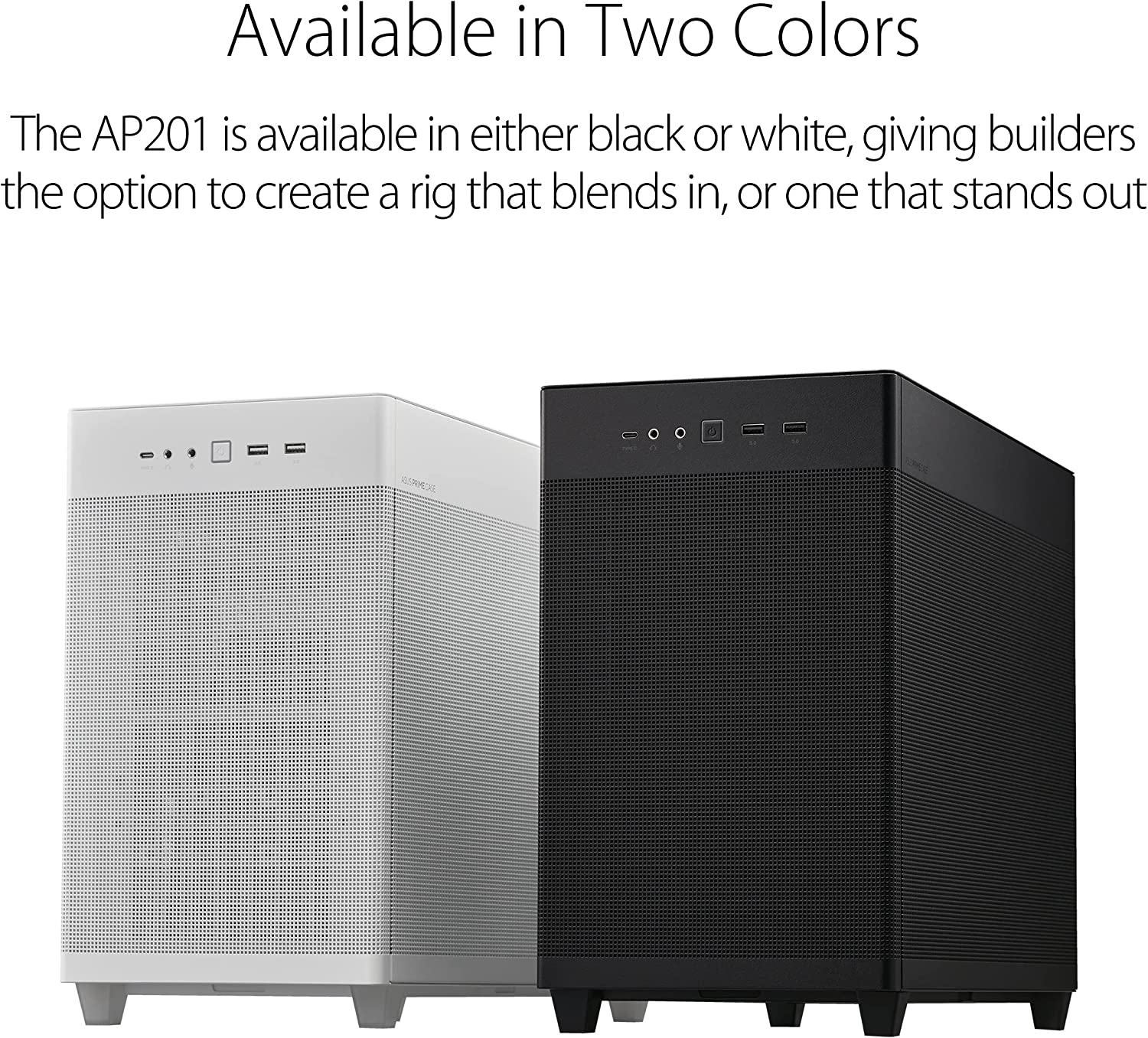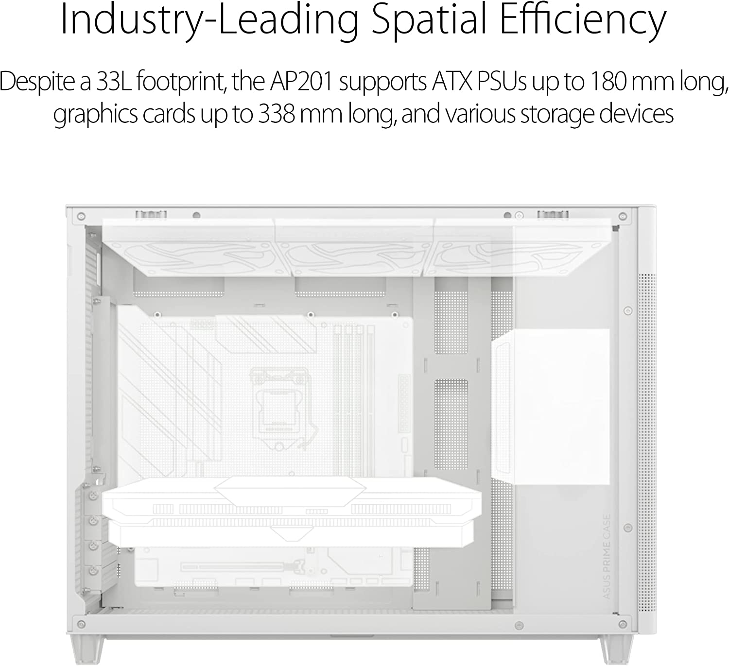 ASUS Prime AP201 33-Liter MicroATX White case with Tool-Free Side Panels and a Quasi-Filter mesh, with Support for 360 mm Coolers, Graphics Cards up to 338 mm Long, and Standard ATX PSUs