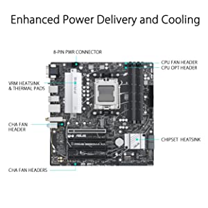 The ASUS Prime B650M-A AX is expertly engineered to unleash the full potential of AMD Ryzen 7000 series processors. Boasting robust power, comprehensive cooling solutions, and intelligent tuning options, Prime B650M-A AX provides daily users and DIY PC builders a range of performance tuning options via intuitive software and firmware features.