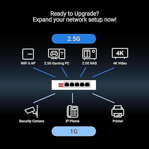 ASUS QG-U1050, 5-Port 2.5G Unmanaged Switch, Support 4 Intelligent Modes, Home Network Hub, Office Ethernet Splitter, Plug and Play, Easy Setup, Desktop, Silent Operation