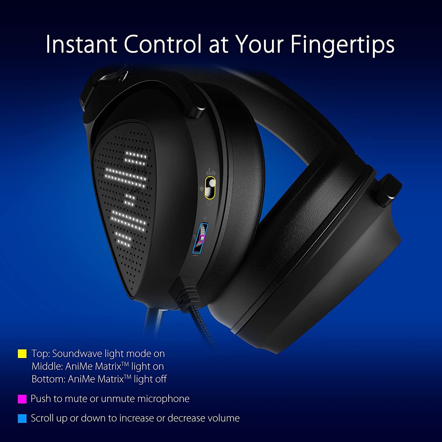 Cutting-edge AniMe Matrix displays on each ear cup feature mini-LEDs that can be programmed to show off your style with custom lighting designs, unique animations and live audio visualizations. The ESS 9281 Quad DAC contains four digital-to-analog converters (DAC) that provide lossless audio processing. There's a DAC for each frequency band — low, mid, high and ultra-high — for clearer sound, and an unparalleled 130 dB signal-to-noise ratio (SNR). With ROG Delta S Animate, you can hear every detail and enjoy crisp, clear sound for a true-to-life audio experience. Master Quality Authenticated (MQA) is an award-winning audio technology that delivers studio-quality sound and reveals every detail of the original recording. The ROG Delta S Animate headset can connect to an MQA core signal, which is used by global streaming service apps such as TIDAL, to complete the final 'unfold' of an MQA music file and provide incredible audio quality. A high signal-to-noise ratio is critical for gaming headsets, especially in FPS games. A higher SNR allows you to precisely pinpoint the origin of enemy footsteps, or hone in on the location of gunfire or explosions on the battlefield. With its ESS 9281 Quad DAC design, ROG Delta S Animate is capable of achieving an unprecedented 130 dB SNR, unrivaled by single DAC headsets. The ASUS AI Noise-Canceling Microphone (AI Mic) has a dedicated processor that’s designed to reduce over 500 million types of background noise while preserving vocal harmonics for crystal-clear in-game voice communication. Common background noises such as chatter, keyboard clatter and mouse clicks are reduced by up to 95%. The USB-C connector and included USB-C to USB-A adapter cable* provide compatibility with PCs, Macs, PlayStation 4 and 5, Nintendo Switch and mobile devices.*Included USB-C to USB-A adapter cable enables connection with PlayStation 4 and 5 and Nintendo Switch. ROG Delta S Animate is exceptionally lightweight at only 310 grams. Ergonomic D-shaped ear cups closely match the shape of your ears to reduce unnecessary contact areas by up to 20%, and a sloped design provides better comfort and also helps improve sound quality by channeling audio directly into the ear canal, tilting the drivers at a 12° angle.