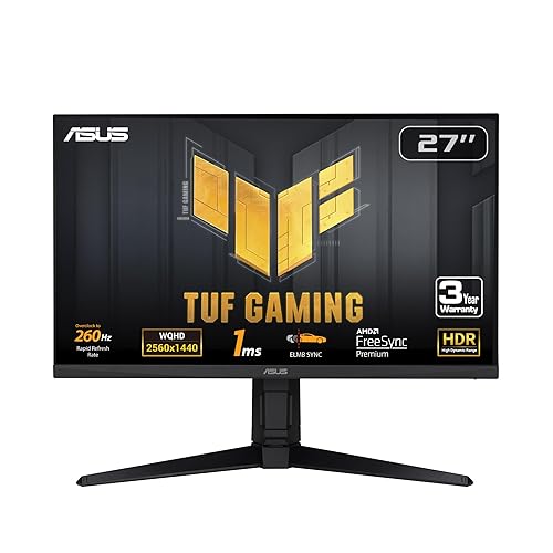 ASUS TUF Gaming 27” 1440P Gaming Monitor (VG27AQML1A) - QHD (2560 x 1440), 260Hz, 1ms, Fast IPS, Extreme Low Motion Blur Sync, G-SYNC compatible, FreeSync Premium, Variable Overdrive, DisplayHDR 40 27" Fast IPS QHD 260Hz G-SYNC Height Adjust Monitor