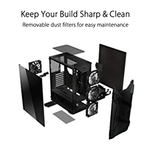 Build your battlestation with the TUF Gaming GT301 Case featuring a perforated honeycomb design, USB 3.2 front panel, and removable dust filters. Stay cool in battle with numerous cooling options with three 120mm fans, one 120mm rear fan and up to six fan-mounting points for targeted airflow.