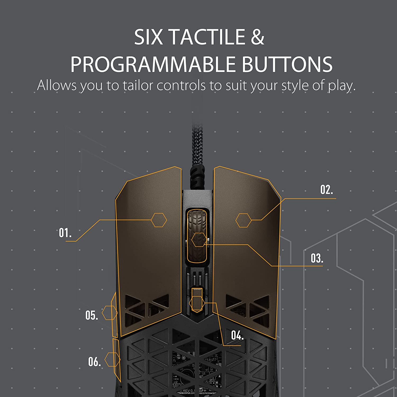 ASUS TUF Gaming M4 Air Lightweight Gaming Mouse | 16,000 dpi Sensor, Programmable Buttons, 47g Ultralight Air Shell, IPX6 Water Resistance, TUF Gaming Paracord and Low Friction PTFE Feet, Black