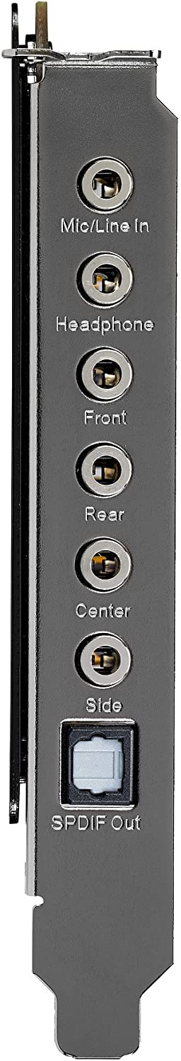 Specifications Mfr Part Number: XONAR AE Features: 192kHz/24-bit Hi-Res audio and 7. 1-channel, 150ohm headphone amp High-quality ESS DAC with 110dB signal-to-noise ratio (SNR) Exclusive EMI back plate provides noise shielding for exceptionally clear audio Sonic Studio enables full audio control via an intuitive, one-page interface Perfect Voice technology eliminates background noise for clear in-game communication Audio Interface: PCI Express Audio Performance: Output Signal-to-Noise Ratio (A-Weighted): 110dB (Front-out), 108 dB (Headphone-out) Input Signal-to-Noise Ratio (A-Weighted): 103 dB Output THD+N at 1kHz (Front-out): <0. 00158% (-96dB) Input THD+N at 1kHz: <0. 0022% (-93dB) Frequency Response (-3dB, 24-bit/192kHz input): 10Hz to 65KHz Chipset: Audio Processor: C-Media USB2. 0 6632AE High-Definition Sound Processor (Max 192KHz/24bit) Digital-to-analog Converter(DAC)‹: ESS ES9023P (112dB DNR, Max. 192KHz/24bit), Cirrus Logic CS4245 (104dB DNR, Max. 192KHz/24bit), Cirrus Logic CS4361(103dB DNR, Max. 192KHz/24bit) Sample Rate and Resolution: Analog Playback Sample Rate and Resolution: 44. 1K/ 48K/ 88. 2K/ 96K/ 176. 4K/ 192KHz@ 16/24bit Analog Recording Sample Rate and Resolution: 44. 1K/ 48K/ 88. 2K/ 96KHz @ 16/24bit S/PDIF Digital Output: 44. 1K/ 48K/ 88. 2K/ 96K/ 176. 4K/ 192KHz@ 16/24bit ASIO 2. 2 Driver Support : 44. 1K/ 48K/ 96K/ 192KHz @ 24/32bit Connectivity: Analog Output: 5x 3. 5mm jack(1/8") (Headphone out / Front out/ Side out/ Center-Subwoofer out/ Rear out) Analog Input: 1x 3. 5mmjack (1/8") (Line-in/ Mic-in combo) Digital: 1x S/PDIF out (1 x Optical (Toslink)) Special Features: Sonic Studio Operating System: Windows 10/ 8. 1/ 7 ( 32-bit/ 64-bit) Accessories: ‹ 1xS/PDIF optical adaptor 1xDriver CD 1xQuick start guide