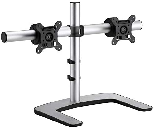 The VFS-DH freestanding desk mount is an ideal accessory for any dual or single monitor application. Both monitors can be independently adjusted up to 20° in any direction and rotated between landscape and portrait orientations. The unique QuickShift lever provides independent horizontal adjustment without the need for a single tool. An elegant design with a footprint of 16.61 x 12 leaves your desk clear of clutter. The freestanding base provides flexibility to be located anywhere on the desk. This mount can be converted into a single display configuration by attaching one of the VESA heads directly onto the vertical post.>Suitable for:>Flat screen monitors up to 26.5lb>Curved screen monitors up to 20lb devices no deeper than 4.7