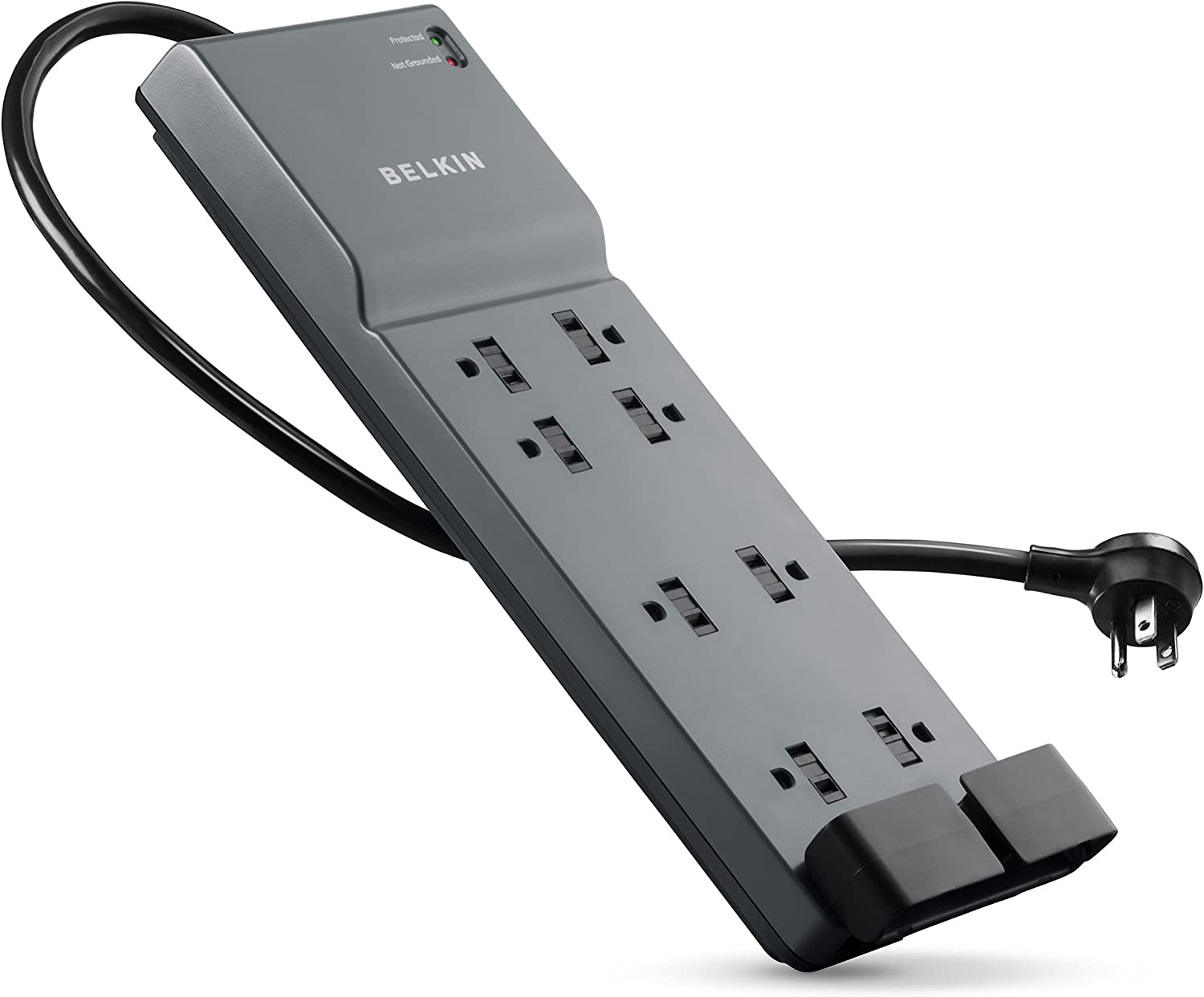Belkin Power Strip Surge Protector with 8 Outlets, 6 ft Long Flat Plug Heavy Duty Extension Cord + Overload Protection for Home, Office, Travel, Compuer Desktop & Phone Charging Brick (3,550 Joules) 1 Pack