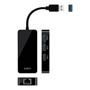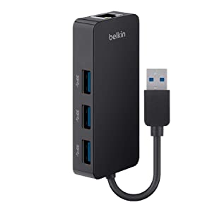 Belkin USB 3.0 Hub with 3 USB Ports & Gigabit Ethernet - USB Splitter - USB Hub 3.0 - USB Docking Station - Ethernet Adapter For Laptop - USB Adapter - USB Hub For Laptop - USB Ethernet Adapter- Black