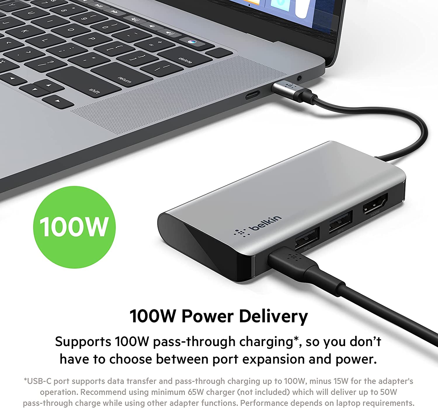 Belkin USB C Hub, 4-in-1 MultiPort Adapter Dock with 4K HDMI, USB-C 100W PD Pass-Through Charging, 2 x USB A Ports for MacBook Pro, Air, iPad Pro, XPS and More 4-in-1 Docking Station