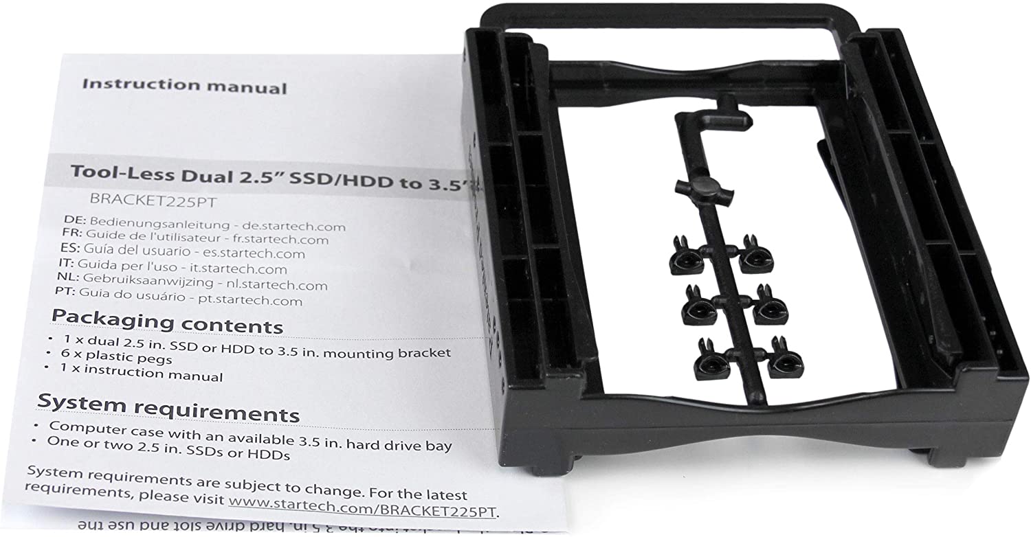 StarTech.com Dual 2.5" SSD/HDD Mounting Bracket for 3.5? Drive Bay - Tool-Less Installation - 2-Drive Adapter Bracket for Desktop Computer (BRACKET225PT), Black 1x3.5" Bay 2x2.5" Drive (Tool-less)