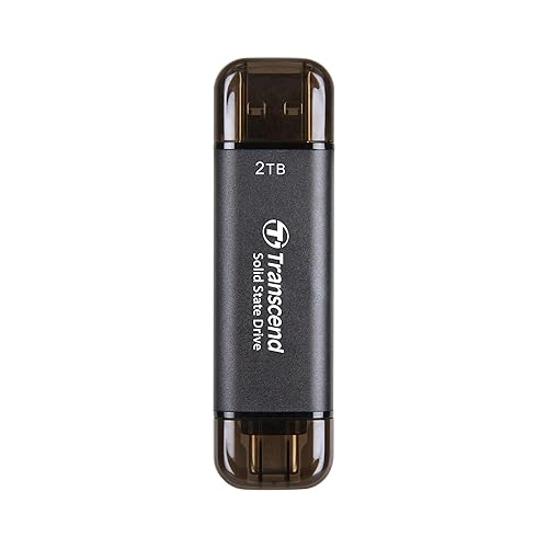 Transcend 2TB External SSD, USB 3.2 Gen 2, Up to 1,050MB/s, Portable SSD with 2-in-1 Type C & Type A, for Steam Deck, ROG Ally, MSI Claw, Windows, Mac, iPhone, iPad, Android, PS5, Xbox, Smart TV-Black 2TB Black